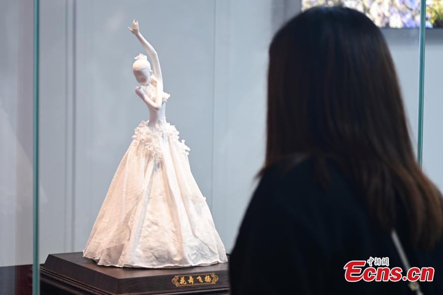 A white porcelain artwork is on show at the 6th China International Import Expo (CIIE) in Shanghai, Nov. 7, 2023. (Photo: China News Service/Tian Yuhao)