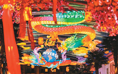 Photo shows dragon-themed decorations at Hollywood Boulevard, the Universal Beijing Resort. (Photo courtesy of the Universal Beijing Resort)