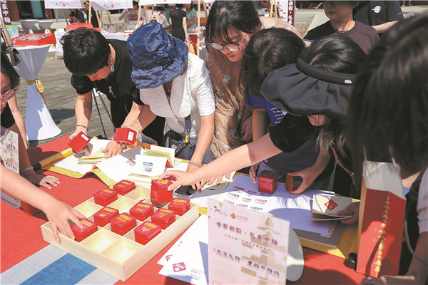 Visitors collect seal stamps of 15 heritage sites on their "Beijing Central Axis passport" there.[Photo provided to China Daily]
