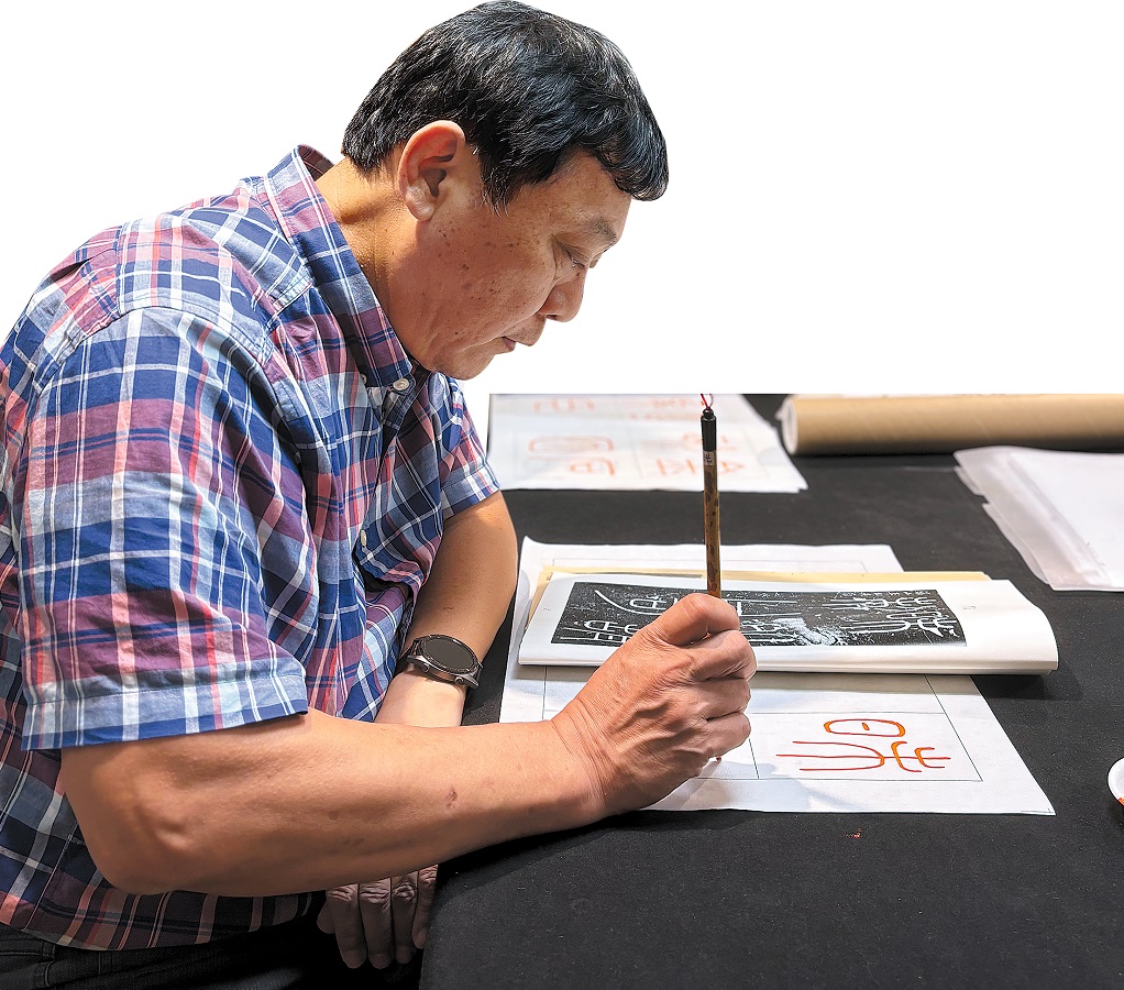 Calligrapher Chen Jun-guang gives a lesson to students at Yin Lu in Taipei last month. FU SHUANGQI/XINHUA