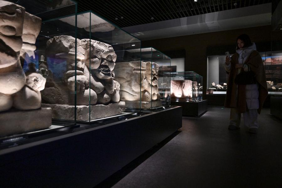 A tourist visits Xixia mausoleums museum in Yinchuan, northwest China's Ningxia Hui Autonomous Region, Nov. 26, 2024. (Xinhua/Feng Kaihua)