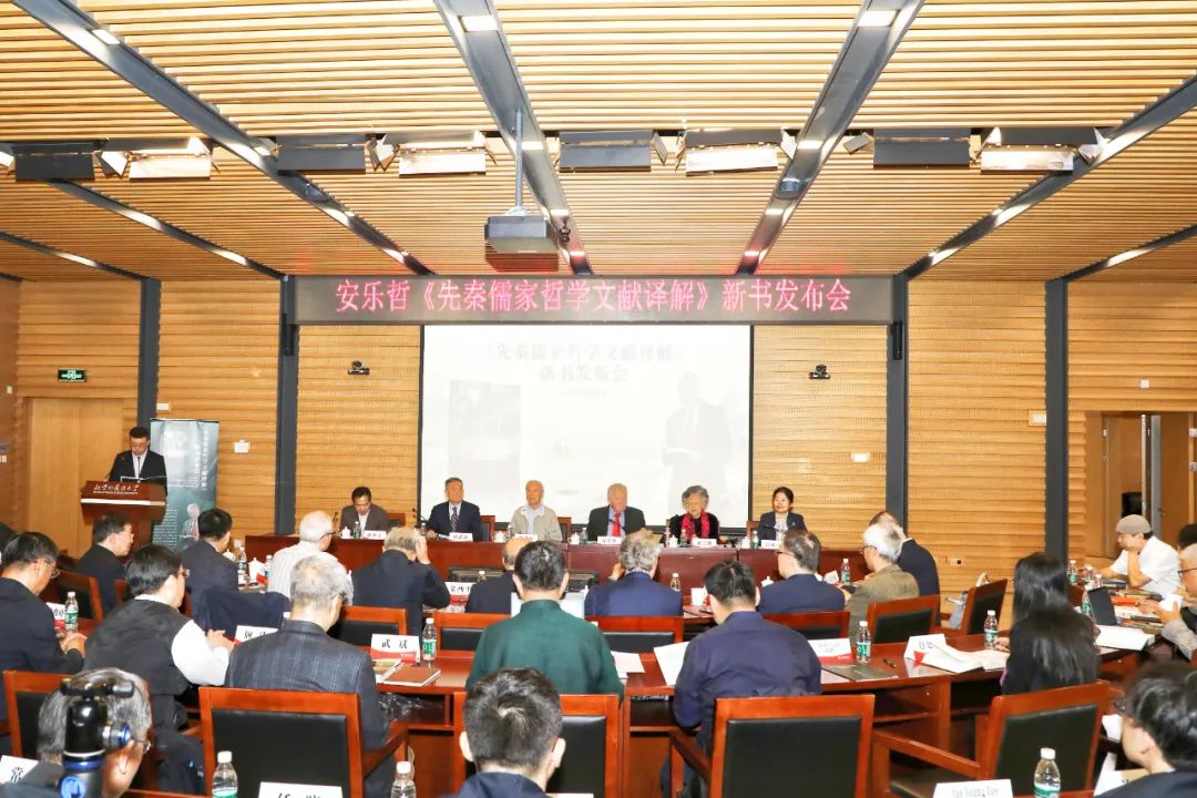 北京中外文化交流基地、北外世界漢學家研修基地主任張朝意,北外中華文化國際傳播研究院副院長薛維華以及安樂哲儒學大家團隊成員張凱先生等40余位專家與會。最后,安樂哲向北京外國語大學中華文化國際傳播研究院進行了贈書儀式,《先秦儒家哲學文獻譯解》發(fā)布會圓滿落下帷幕。
