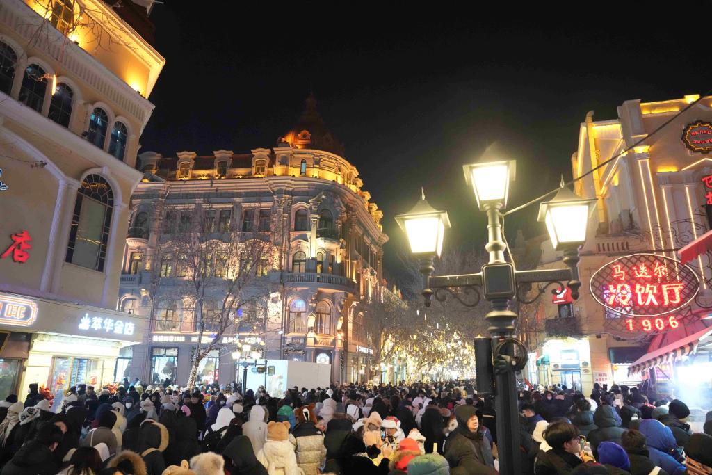 2023年12月31日,哈爾濱百年老街中央大街人頭攢動。新華社記者 王建威 攝