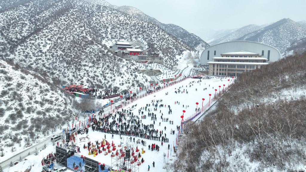 2023年12月30日,游客在內蒙古卓資縣林胡古塞景區參觀游玩(無人機照片)。新華社記者 貝赫 攝