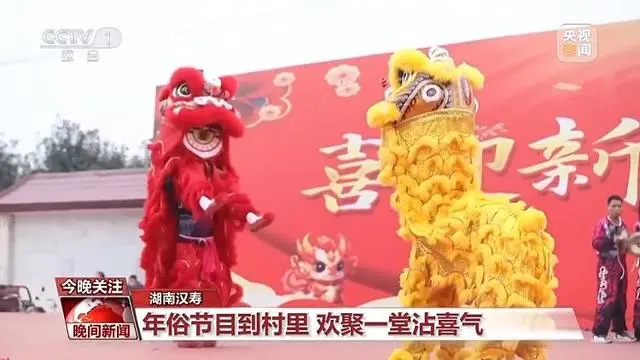 在湖南常德漢壽縣,村民不出村就能看到豐富的年俗節(jié)目,威風(fēng)凜凜的“雄獅”在爆竹和鑼鼓的鏗鏘伴奏下,舞得風(fēng)生水起。100張圓桌整齊排列,1000余位村民歡聚一堂,共同感受過年的喜氣。