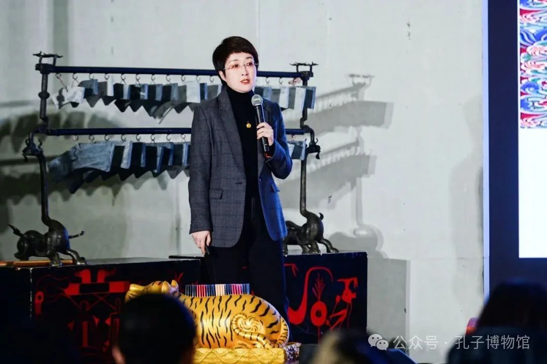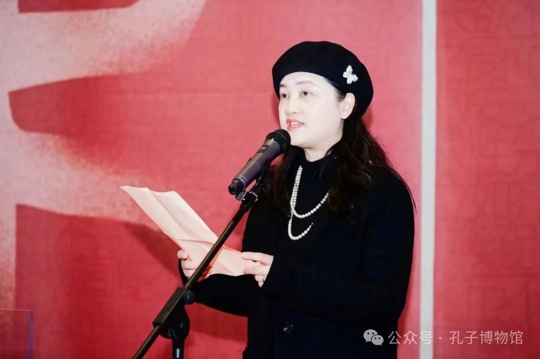 在開幕式上,中國(guó)絲綢博物館館長(zhǎng)季曉芬,尼山世界儒學(xué)中心副主任、孔子博物館館長(zhǎng)郭思克發(fā)表致辭。