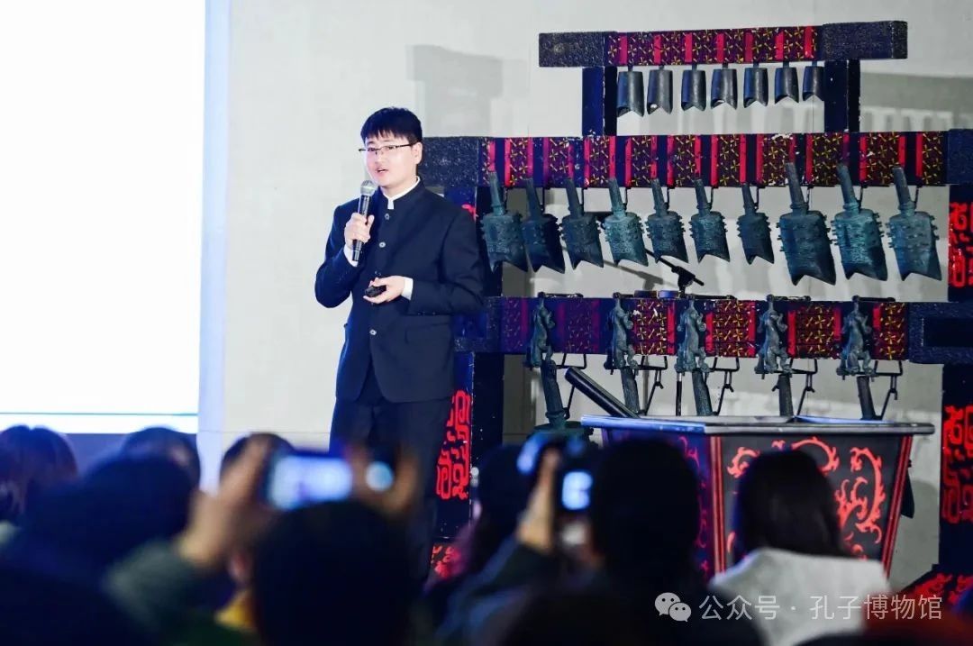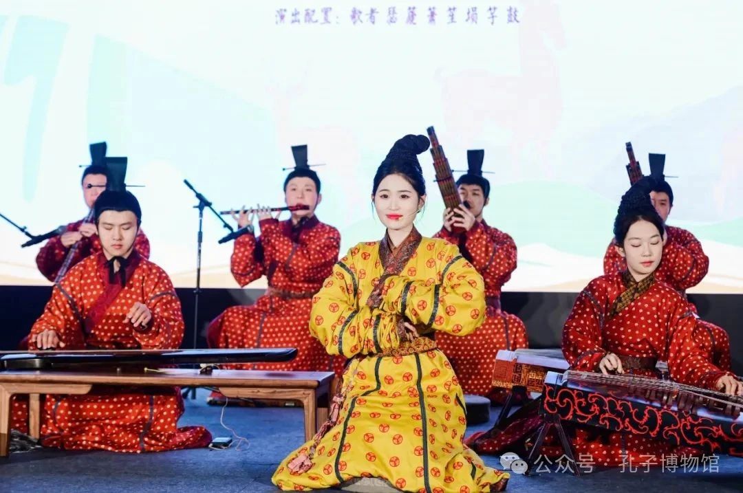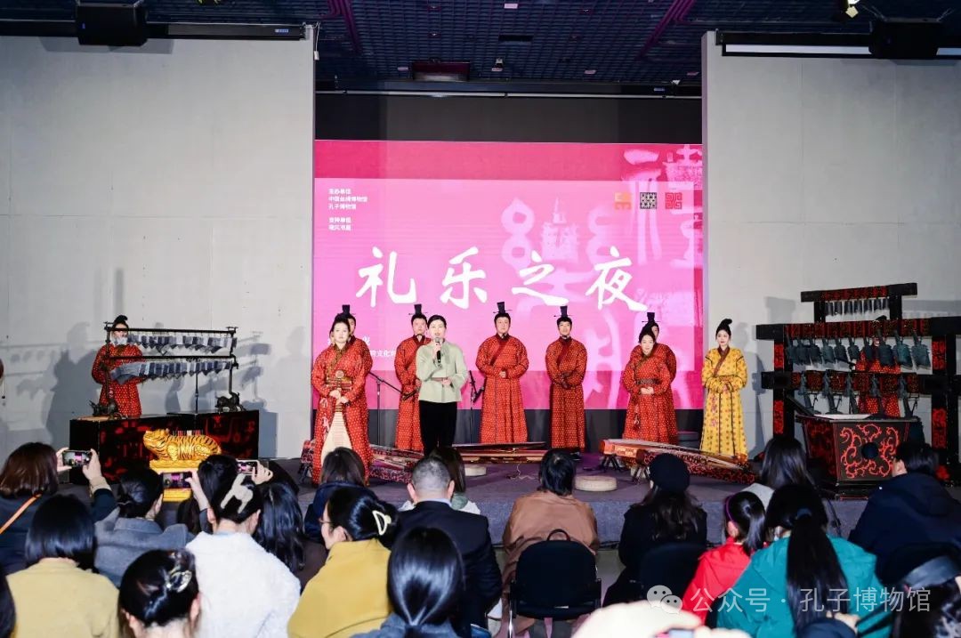 開幕式當(dāng)晚,孔子博物館和中國(guó)絲綢博物館共同舉辦了“禮樂之夜”活動(dòng)。孔子博物館孔府舊藏服飾研究中心主任徐冉帶來(lái)《齊明盛服以承祭祀》主題分享,通過(guò)對(duì)明代衍圣公祭服的解讀,剖析明代服飾在禮儀文化中的重要作用。孔子博物館典藏部主任褚紅軒為觀眾帶來(lái)了《畢誠(chéng)畢敬-談孔子博物館藏清代獸面紋掐絲琺瑯五供》主題分享,讓觀眾對(duì)“五供”的歷史源流與特點(diǎn)有更深入的了解。此外,孔子博物館的簫韶樂團(tuán)圍繞“禮、樂、歌、舞”多途徑探索,對(duì)傳世古曲進(jìn)行了二次編排復(fù)原。其中,鐘、磬、琴、瑟、篪等各類樂器數(shù)十件,皆是以出土樂器文物為參照復(fù)原而來(lái)。此次演出了《詩(shī)經(jīng)?小雅?鹿鳴》《妝臺(tái)秋思》《鳳求凰》《春江花月夜》等曲目。