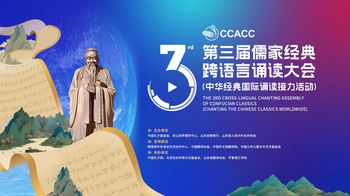 第三屆儒家經(jīng)典跨語(yǔ)言誦讀大會(huì)(中華經(jīng)典國(guó)際誦讀接力活動(dòng))是由尼山世界儒學(xué)中心、中國(guó)孔子基金會(huì)、山東省教育廳、山東省人民對(duì)外友好協(xié)會(huì)聯(lián)合舉辦的大型人文交流活動(dòng)。