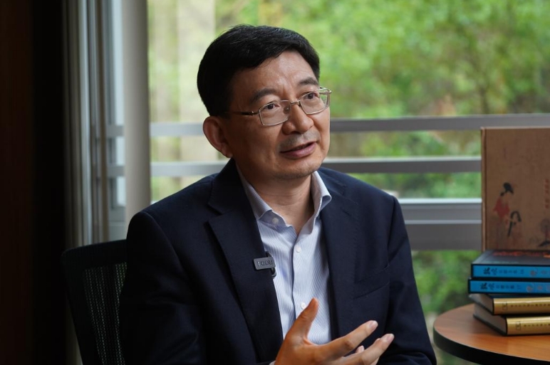 香港商務(wù)印書館總經(jīng)理兼總編輯毛永波在接受記者采訪(4月30日攝)。新華社記者 龍鏡伊 攝