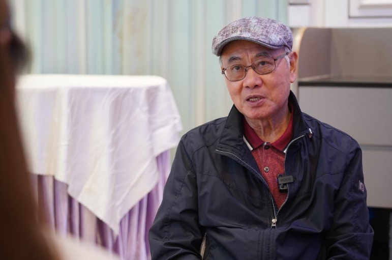 香港商務(wù)印書館前員工陳潤(rùn)瓊在接受記者采訪(4月30日攝)。新華社記者 龍鏡伊 攝