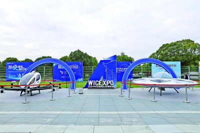 “互聯網之光”博覽會場館外展示的低空飛行器。光明網記者崔益明攝/光明圖片