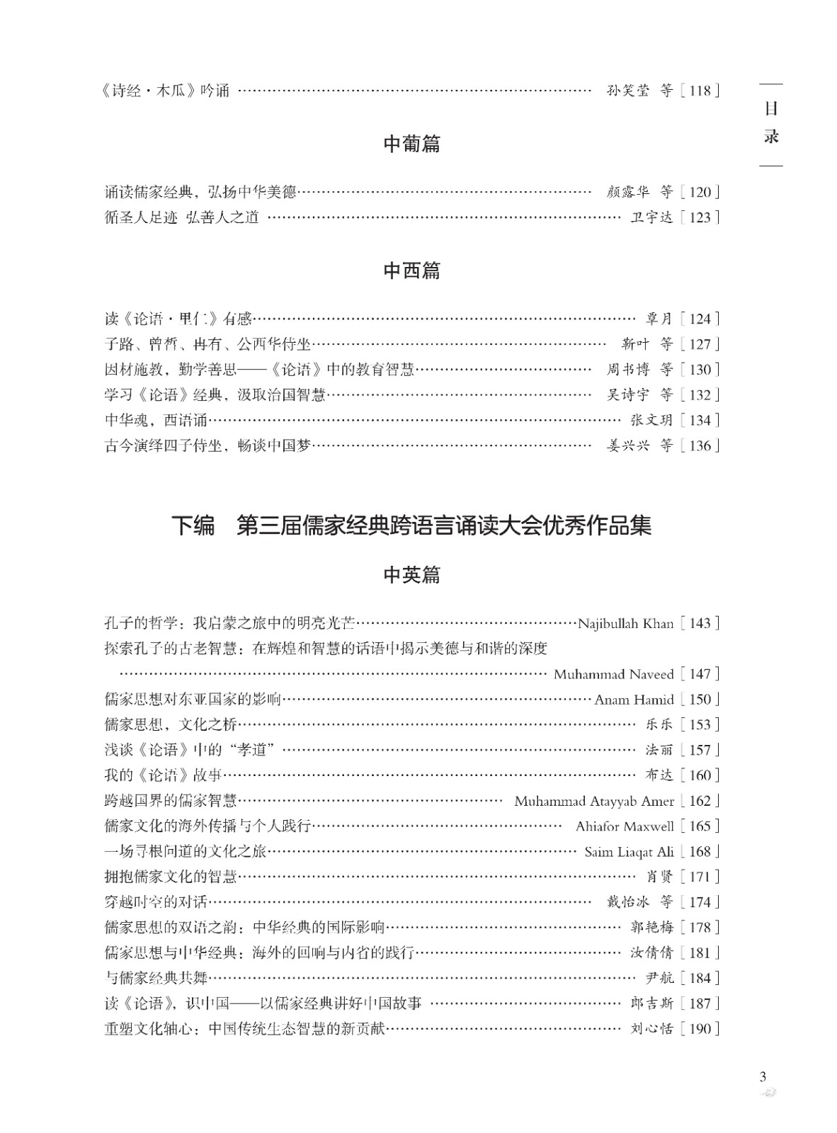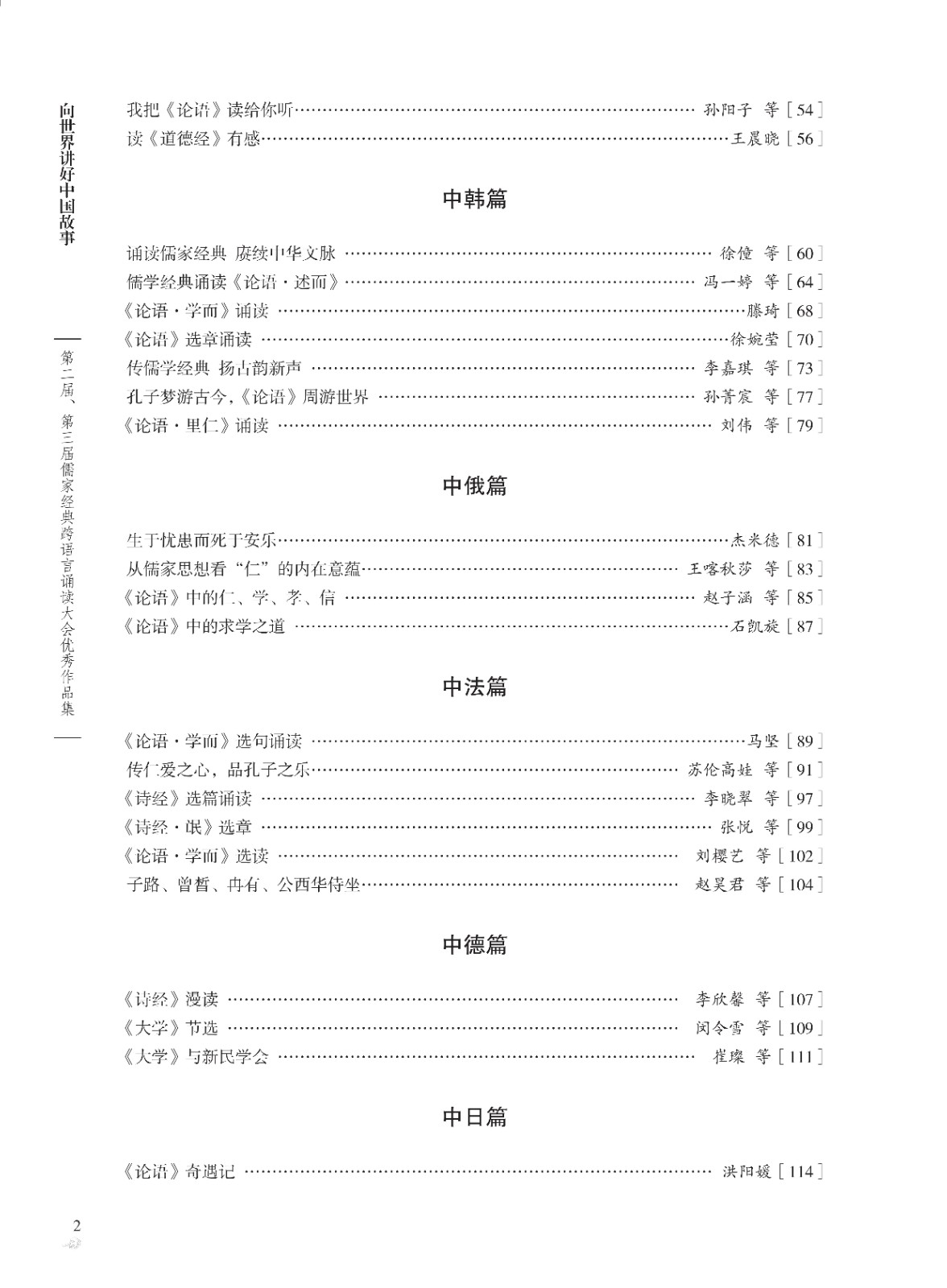 本書收錄了第二屆、第三屆儒家經典跨語言誦讀大會130篇優秀作品。這些作品用中英、中俄、中日、中韓、中德、中法、中葡、中西、中意、中阿、中越11種語言,以文字和視頻的方式深情詮釋和演繹中華經典,本書對作品的文本與視頻二維碼進行了同步收錄。
